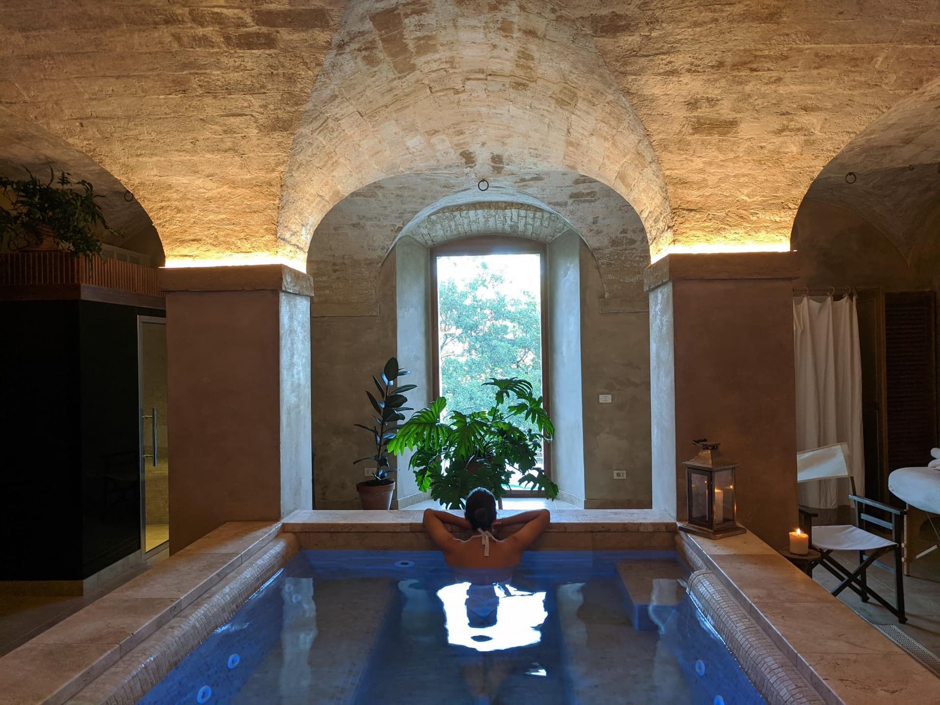 Tranquillità e silenzio tra bagni di vapore e riti nell’acqua, con sauna e idromassaggio per rigenerare anima e corpo in uso esclusivo.