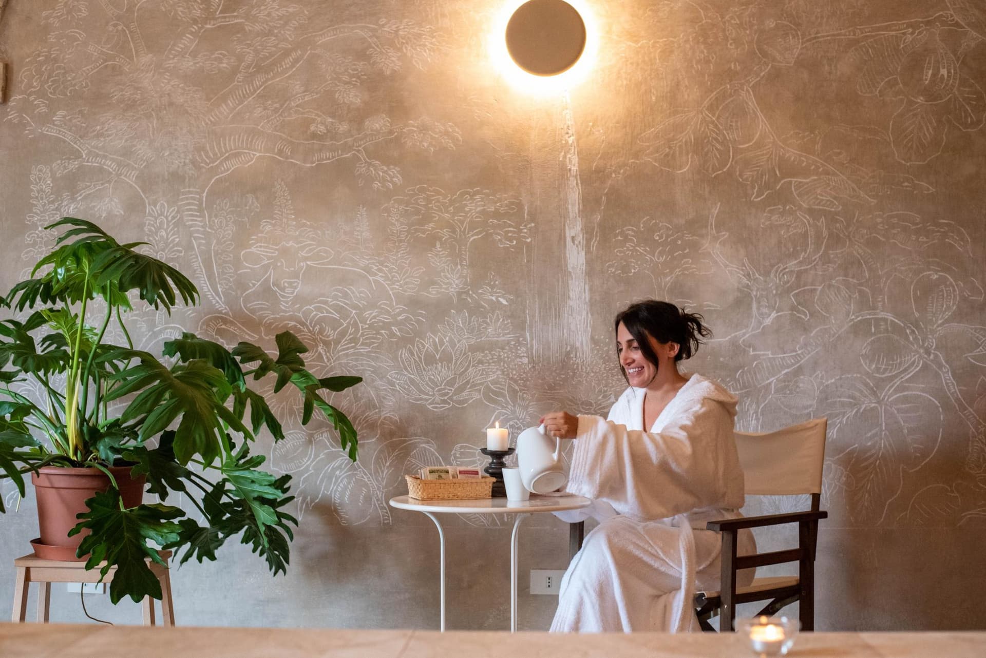 Qui si incontra un profondo sollievo tra bagni di vapore con aromaterapia, l’idromassaggio in vasca con acqua calda a 36°, sauna in legno di pino a infrarossi, area relax su lettini ergonomici affacciati davanti alla grande veduta del bosco e uliveti secolari. La nostra struttura impiega biomassa per riscaldare sia la spa che le camere.